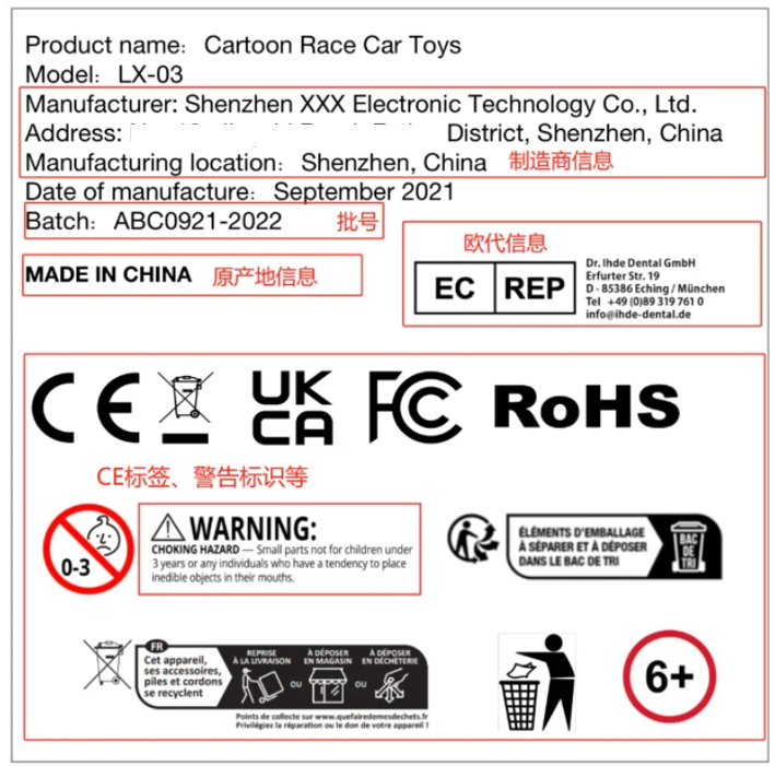 3. 标签要求:GPSR要求产品标签包含更详细的信息:如产品类型、批次或序列号、制造商名称、注册商号或注册商标、制造商的邮政和电子地址、警告(如适用)以及儿童适用年龄(如适用)等。